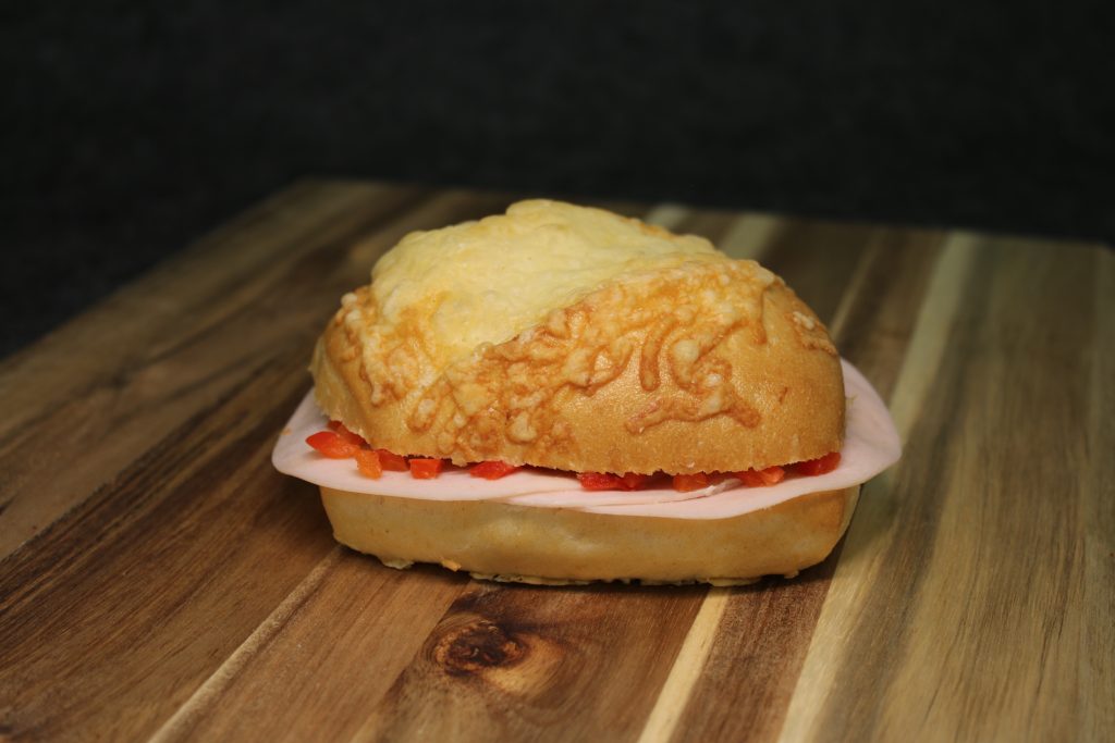 Belegtes Käsebrötchen mit leckeren Hähnchen.