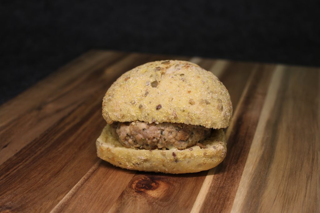 Belegtes Maisbrötchen mit leckerem Hähnchenschnitzel, im Schlauchbeutel oder unverpackt bestellbar.