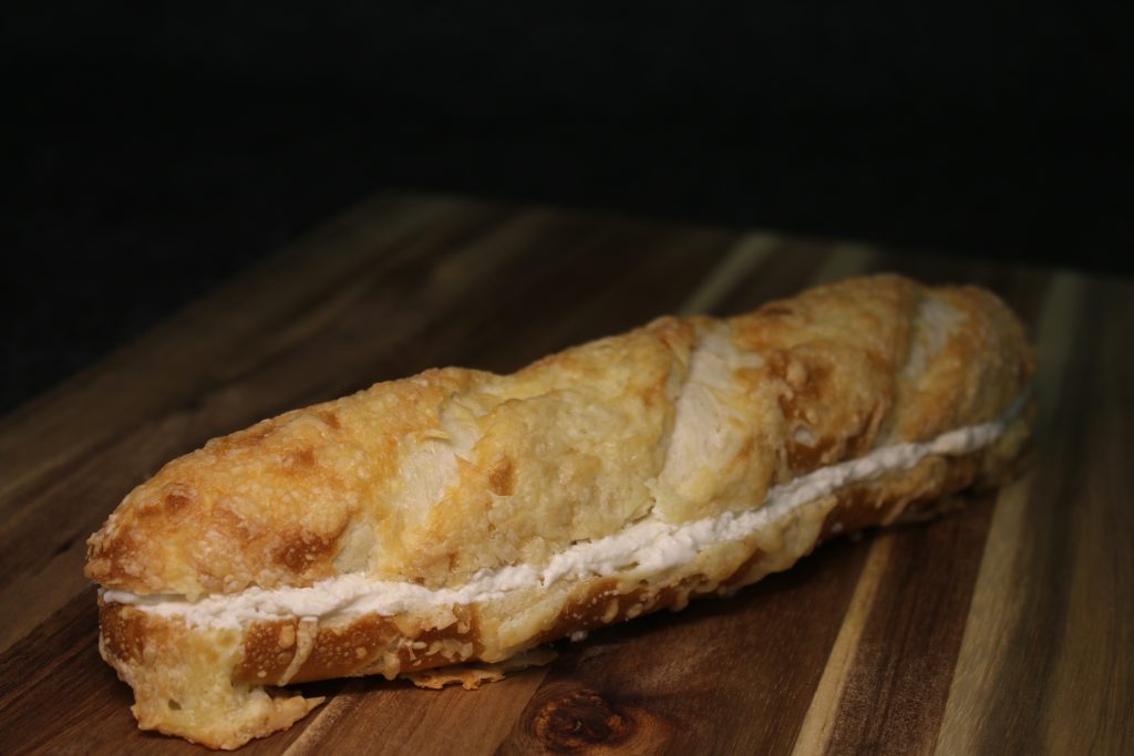 Belegte Laugenkäsestange mit leckerem Frischkäse.