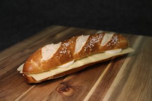 Belegte Laugenstange mit leckeren Gouda.